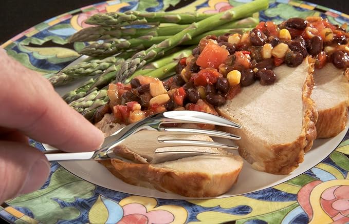 - Innovative design allows the forks to cut through foods
