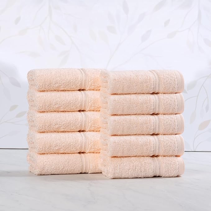 Superior Egyptian Cotton 10-Piece Face Towel Set , Small Towels For Facial, Spa, Quick Dry, Absorbent Towels, Bathroom Accessories, Guest Bath, Home Essentials, Washcloth, Airbnb, Peach
