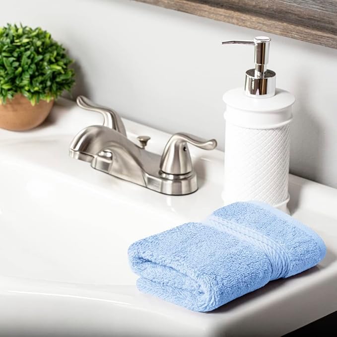 Superior Egyptian Cotton Pile Face Towel/Washcloth Set of 6, Ultra Soft Luxury Towels, Thick Plush Essentials, Absorbent Heavyweight, Guest Bath, Hotel, Spa, Home Bathroom, Shower Basics, Light Blue