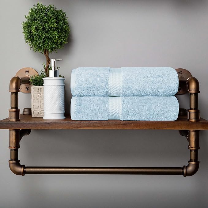 Superior Egyptian Cotton Pile Bath Towel Set of 2, Ultra Soft Luxury Towels, Thick Plush Essentials, Absorbent Heavyweight, Guest Bath, Hotel, Spa, Home Bathroom, Shower Basics, Light Blue