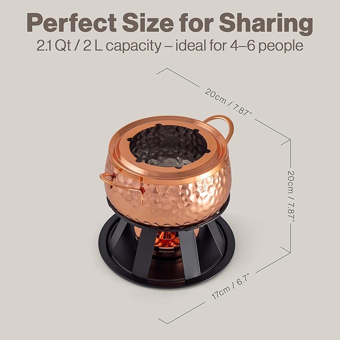 - Durable and Easy to Use: Built to last, the copper-plated stainless steel pot provides even heat distribution and resistance to wear and tear, ensuring reliable performance over time. The Copper-Plated design makes it perfect for preparing oil and broth-based fondues with ease.