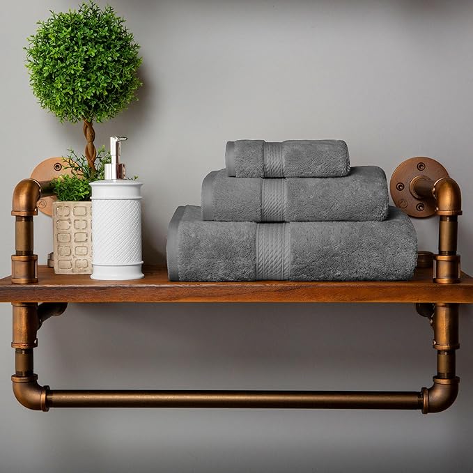 Superior Egyptian Cotton Pile 3 Piece Towel Set, Includes 1 Bath, 1 Hand, 1 Face Towel/Washcloth, Ultra Soft Luxury Towels, Thick Plush Essentials, Guest Bath, Spa, Hotel Bathroom, Charcoal