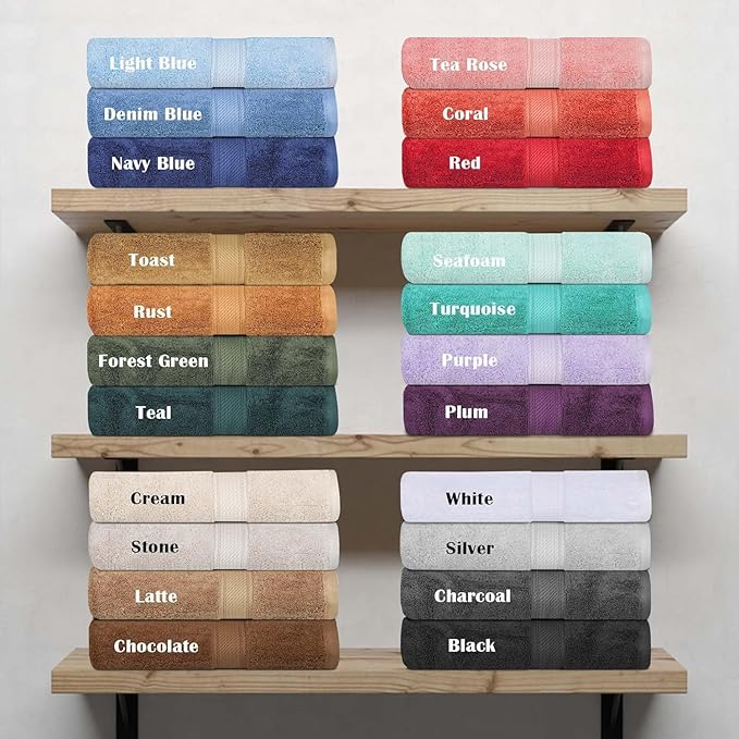 - 𝐎𝐏𝐔𝐋𝐄𝐍𝐓 𝐂𝐎𝐌𝐅𝐎𝐑𝐓: These towels are crafted from Egyptian Cotton pile fibers that are naturally strong, absorbent, and soft; heavyweight and plush; Set includes: 1 Hand (30"L x 16"W), 1 Bath (55"L x 30"W) and 1 Face Towel/Washcloth (13"L x 13"W)