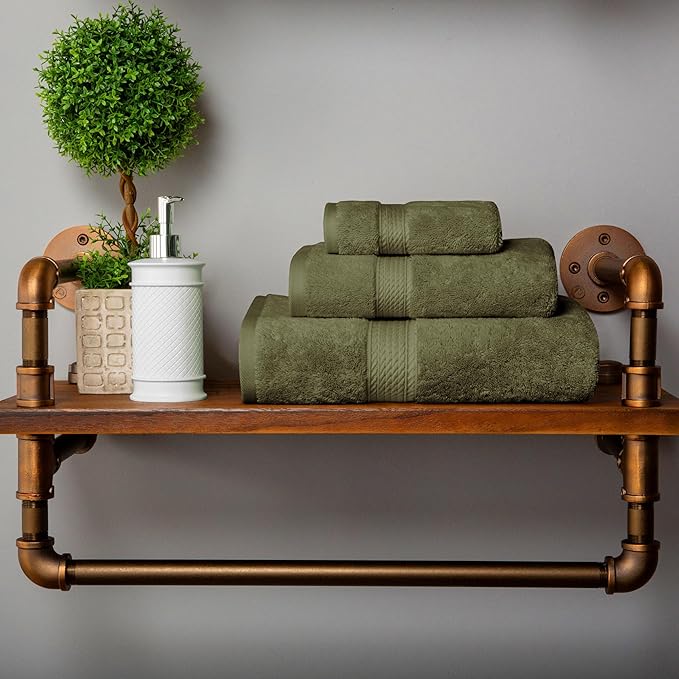 Superior Egyptian Cotton Pile 3 Piece Towel Set, Includes 1 Bath, 1 Hand, 1 Face Towel/Washcloth, Ultra Soft Luxury Towels, Thick Plush Essentials, Guest Bath, Spa, Hotel Bathroom, Forest Green