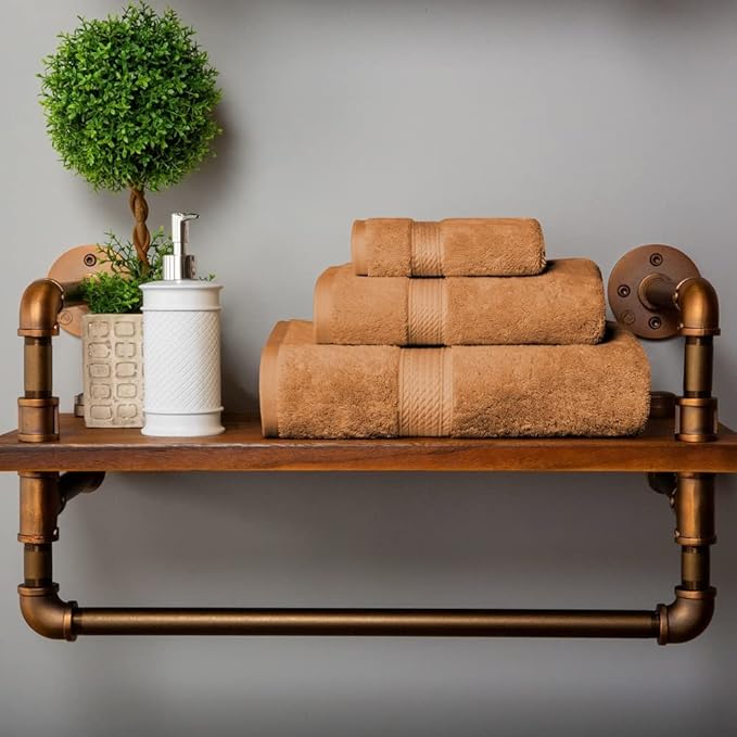 Superior Egyptian Cotton Pile 3 Piece Towel Set, Includes 1 Bath, 1 Hand, 1 Face Towel/Washcloth, Ultra Soft Luxury Towels, Thick Plush Essentials, Guest Bath, Spa, Hotel Bathroom, Rust