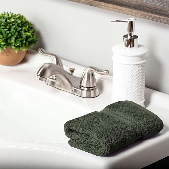 Superior Egyptian Cotton Pile Face Towel/Washcloth Set of 6, Ultra Soft Luxury Towels, Thick Plush Essentials, Absorbent Heavyweight, Guest Bath, Hotel, Spa, Home Bathroom, Shower Basics, Forest Green