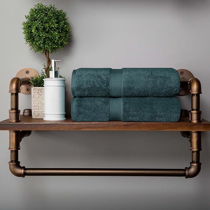 Superior Egyptian Cotton Pile Bath Towel Set of 2, Ultra Soft Luxury Towels, Thick Plush Essentials, Absorbent Heavyweight, Guest Bath, Hotel, Spa, Home Bathroom, Shower Basics, Teal
