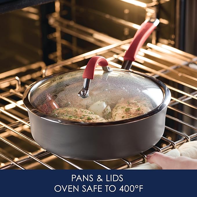 - DURABLE, QUICK TO HEAT, OVEN SAFE COOKWARE SET: This cookware boasts hard-anodized construction for swift, even heating and is oven safe to 400 degrees F