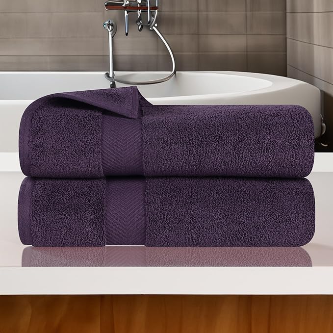 Superior Zero Twist 100% Cotton Bath Towels, Super Soft, Fluffy and Absorbent, Premium Quality Oversized Bath Towel Set of 2, Grape Seed