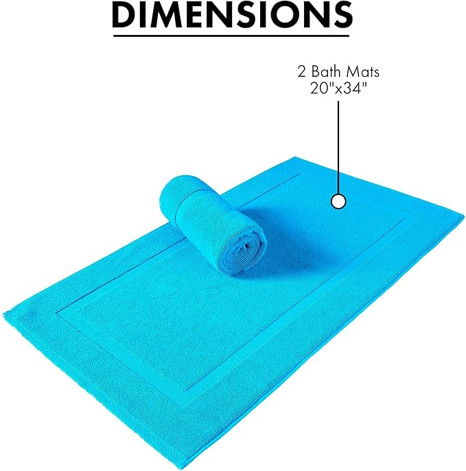 - ✔️ PLUSH & COMFY UNDERFOOT (2-PIECE SET): This coordinated set includes two luxurious 20 x 34 inch bath mats, the perfect size for placing by the shower and sink. Step out onto a cloud of plush, comfy Turkish cotton that provides a warm, spa-like welcome for your feet. Say goodbye to cold, hard tile floors forever.