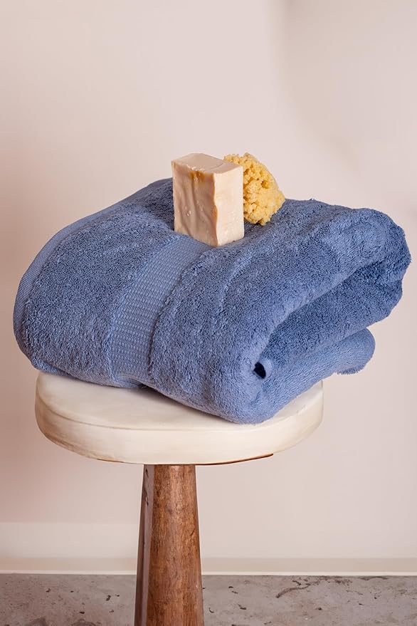 SALBAKOS 100% Turkish Cotton Extra Large Bath Sheet Set of 2 35x70 inch | Heirloom Quality | Hotel & Spa Collection | Soft, Absorbent Oversize Bath Towels | Made in Turkey (Blue, 2 Bath Sheets)