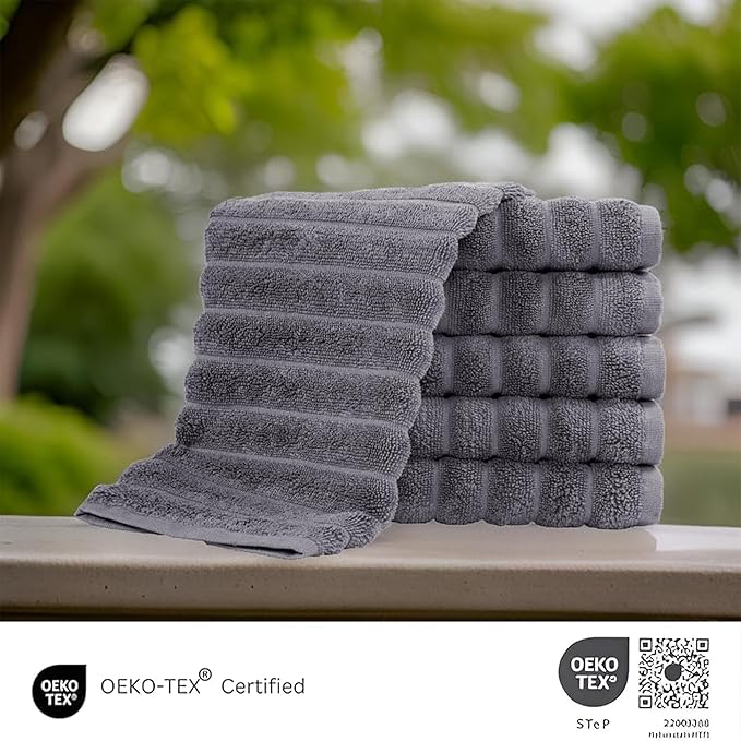 Classic Turkish Towels CTT Luxurious 100% Turkish Cotton Washcloths 6 Pack, Highly Absorbent & Quick Dry, Face Towels Wash Cloths for Hotel, Spa & Gym | 13"x13" (Grey)