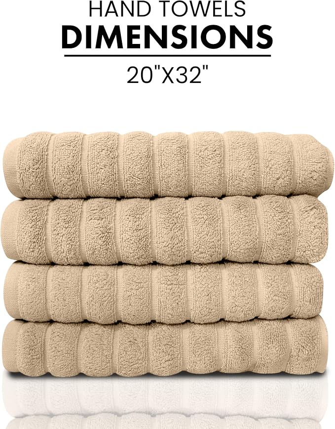 Classic Turkish Towels CTT Luxury Hand Towels for Bathroom Set of 4, 100% Turkish Cotton, Quick Dry & Comfy Towels for Hotel & Spa, Highly Absorbent | 20"x32" (Almond Beige)