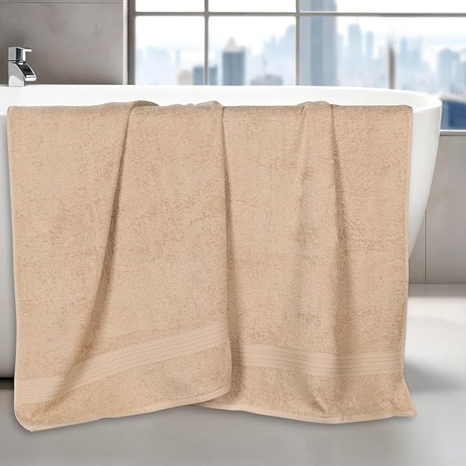 Superior Eco-Friendly Cotton 2-Piece Bath Sheet Set, Oversized Towels for Adults and Kids, Body Towels for Shower, Bath, Quick Dry, Resort, Bathroom Basics, Home, Apartment Essentials, Camel