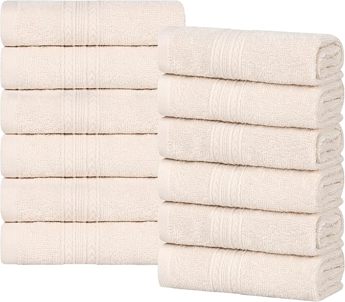 Superior Eco-Friendly Cotton 12-Piece Face Towel/Washcloth Set, Small, Fast Drying Towels for Face, Spa, Resort, Hotel, Hand, Shower, Guest Bathroom, Home, Airbnb, Apartment Essentials, Ivory