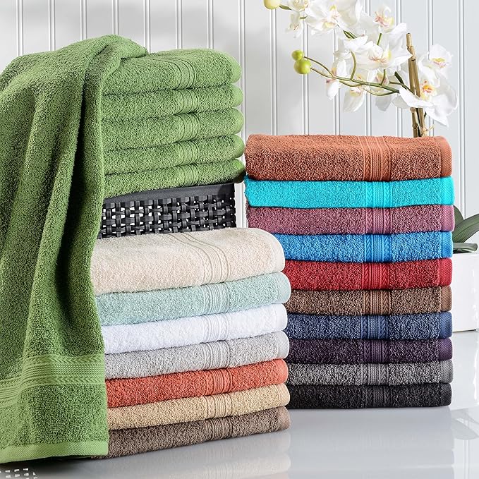 - IMPRESSIVELY SOFT: Lightweight, breathable, and highly absorbent, the cotton fibers in these towels are carefully spun and twisted to make them thinner and buttery soft. These medium-weight towels offer enhanced durability and absorbency