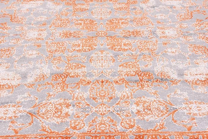Unique Loom Traditional Classic Intricate Design Distressed Vintage Detail, Area Rug, 8' 0" x 8' 0", Terracotta/Gray