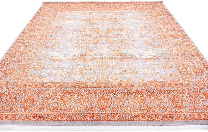 - Size in FT: 8' 0 x 8' 0 - Size in CM: 245x245 - Pile Height & Thickness: 1/3" - Colors: Terracotta, Gray