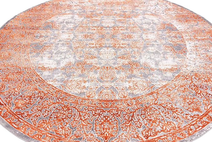 Unique Loom Traditional Classic Intricate Design Distressed Vintage Detail, Area Rug, 8' 0" x 8' 0", Terracotta/Gray