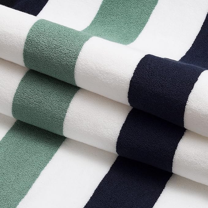Laguna Beach Textile Co. Striped Cabana Beach Towel - Oversized, Plush 630 GSM Cotton - Midnight Blue & Seafoam Green
