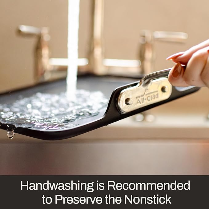 All-Clad HA1 Hard Anodized Nonstick Griddle 11x11 Inch Oven Broiler Safe 500F, Lid Safe 350F Pots and Pans, Cookware Black