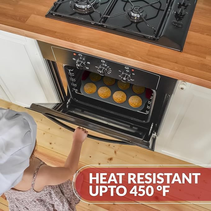 - PROFESSIONAL DESIGN - Wide handles of this mini muffin pan for toaster oven allow a firm grip; textured silicone grips are comfortable and secure.High quality non-stick silicone cups of this muffin tin for baking are dishwasher,freezer and oven safe