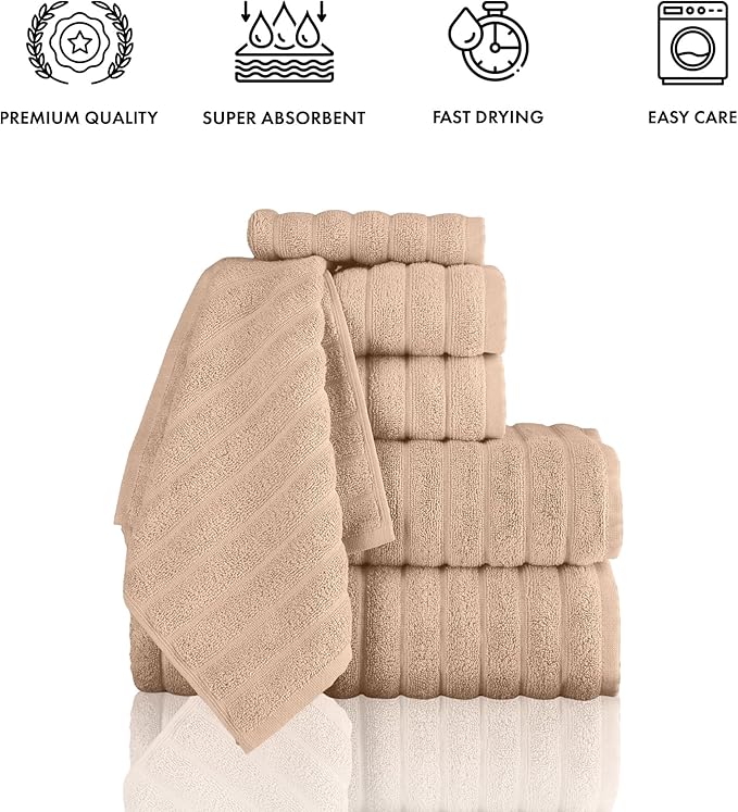 Classic Turkish Towels CTT Luxury 6 Piece Towel Set, 100% Turkish Cotton, Quick Drying, Highly Absorbent & Comfy, Includes 2 Bath Towels, 2 Hand Towels & 2 Washcloths | (Almond Beige)