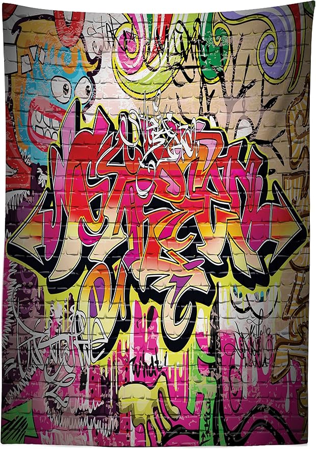 Ambesonne Brick Wall Tablecloth, Graffiti on Wall Urban Street Art with Spray Paint Tagger Underground Theme, Rectangular Table Cover for Dining Room Kitchen Decor, 52" X 70", Soft Red