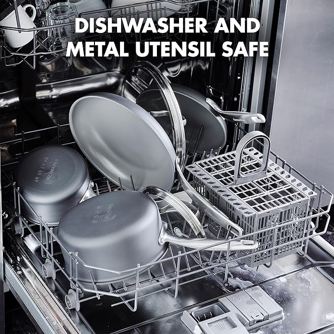 - Metal utensil safe, this collection's diamond-reinforced coating is incredibly durable