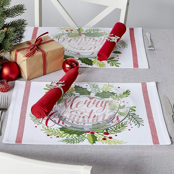 DII Boughs of Holly Collection Decorative Holiday Dining Table & Kitchen Décor, Placemat Set, 13x19,Christmas Greenery, 6 Count