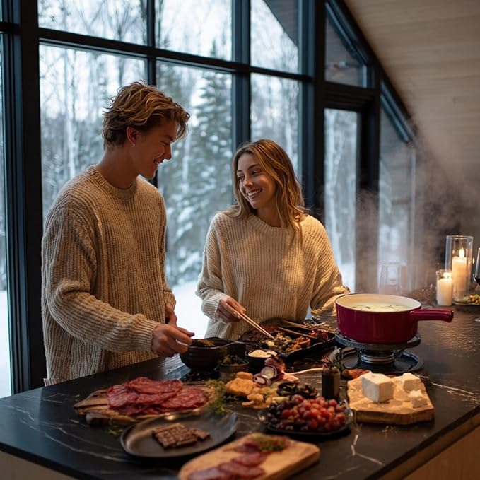 - CLASSY FONDUE ENTERTAINNING - Artestia Cast Iron Fondue Set brings the old, authentic way of making luscious fondue – but made more conveniently! It features a super sleek and portable design that allows you to create an elegant centerpiece for your table setting - perfect for entertaining, dinner parties, and special occasions