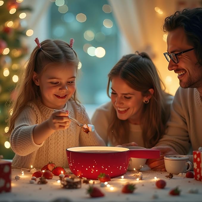 Artestia Cast Iron Swiss Fondue Set – Swiss Traditional 2L Cheese & Chocolate Fondue Pot for 4-6 People – Ideal for Melting Cheese, Chocolates, Caramel, & More, Red