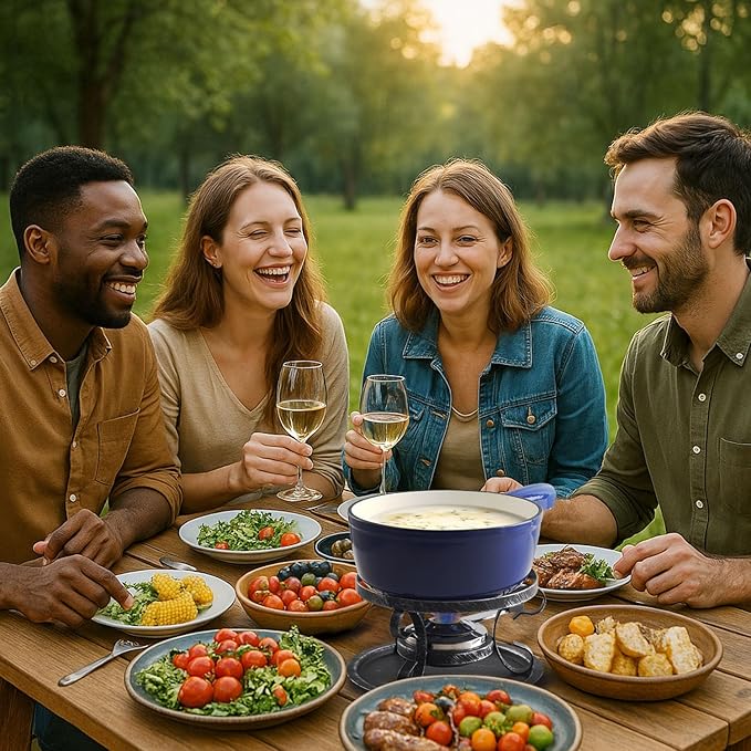- CLASSY FONDUE ENTERTAINNING - Artestia Cast Iron Fondue Set brings the old, authentic way of making luscious fondue – but made more conveniently! It features a super sleek and portable design that allows you to create an elegant centerpiece for your table setting - perfect for entertaining, dinner parties, and special occasions