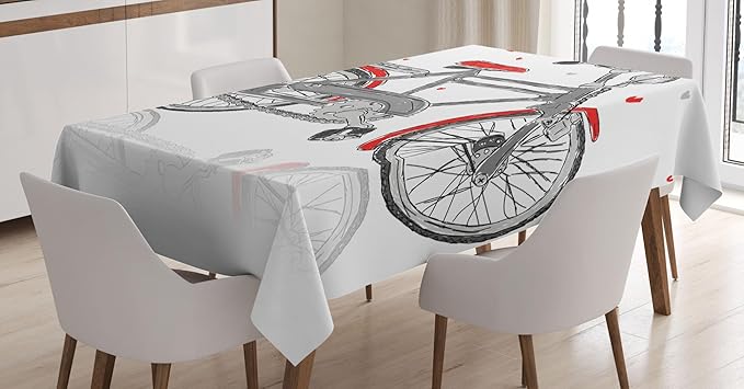 Ambesonne Romantic Tablecloth, Sketchy Hand Drawn Illustration of a Bicycle Vintage Bike Hearts Art Print, Rectangular Table Cover for Dining Room Kitchen Decor, 52" X 70", Grey Orange