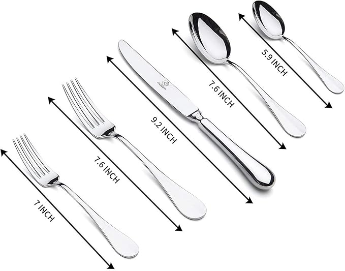 - Crafted with premium 18/10 stainless steel, this flatware set is thick, heavy-duty, strong and sturdy.