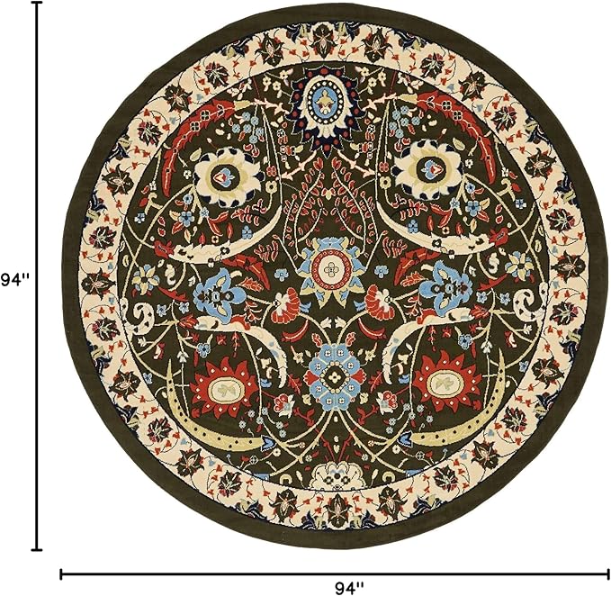 - Size in FT: 8' 0 x 8' 0 - Size in CM: 245x245 - Pile Height & Thickness: 1/3" - Colors: Olive, Ivory