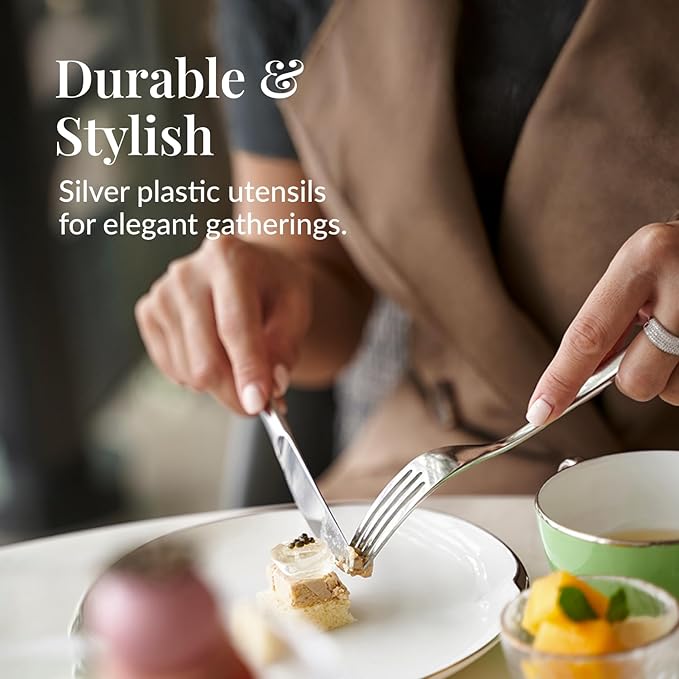 - Elegant and Affordable: The polished silver look of this plastic silverware sets for parties brings style to any occasion, creating an upscale feel on a budget and fitting formal or casual décor