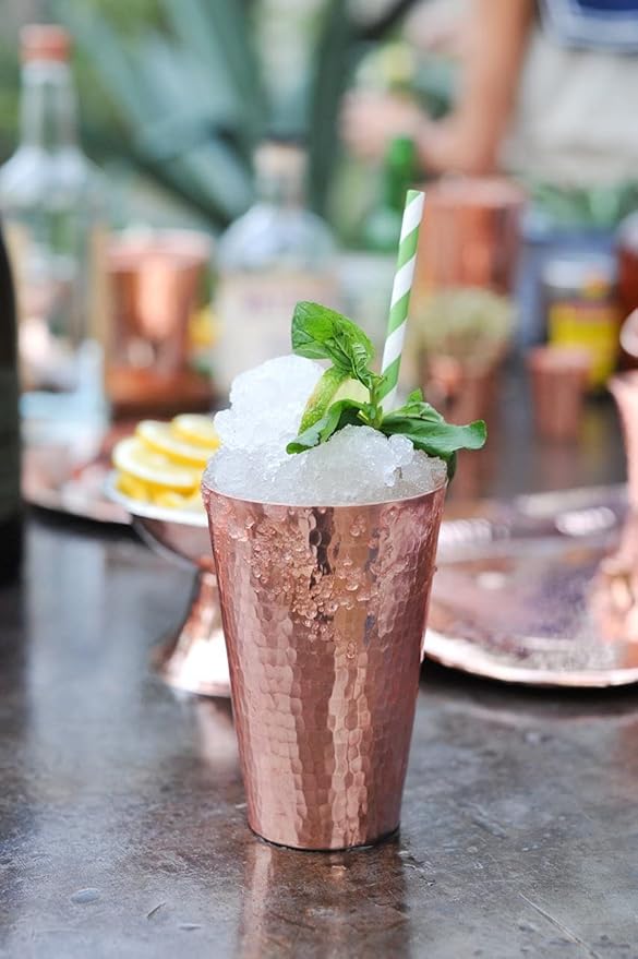 - BEAUTIFUL & FUNCTIONAL DESIGN – Tall, slender 16oz copper drinking cup, perfect for ice water, cocktails, iced tea, or summer refreshments. A customer favorite that pairs beautifully with any bar set.