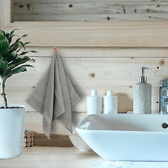 Luxury Hotel & Spa Collection, Quick Dry 100% Turkish Cotton 700 GSM, Eco Friendly Towel, for Bathroom, Gymand Kitchen Dobby Border Soft Hand Towel Set 16 X 30, Gray, Hand Towels - Set of 6