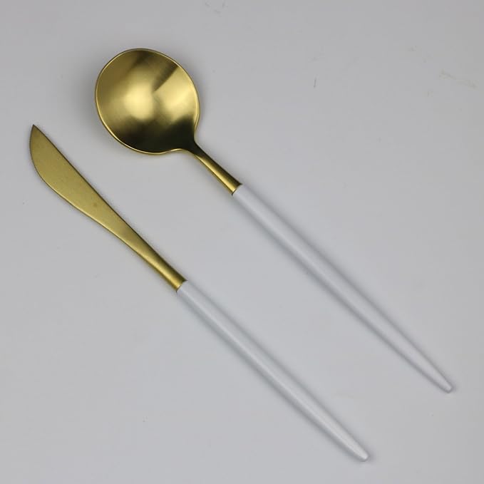 - Luxury Matte White and Gold Color, Top Quality Material 18/10 Stainless Steel, Durable will not Bend