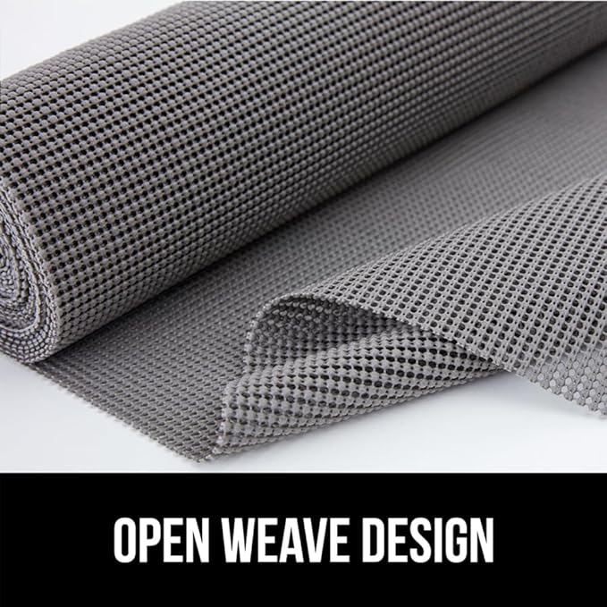 GORILLA GRIP powerGRIP Drawer Shelf and Cabinet Liner, Thick Strong Hold, Non-Adhesive Liners Protect Kitchen Cabinets and Cupboard, Bathroom Drawers, Easy Install, Breathable Mat, 12" x20', Gray