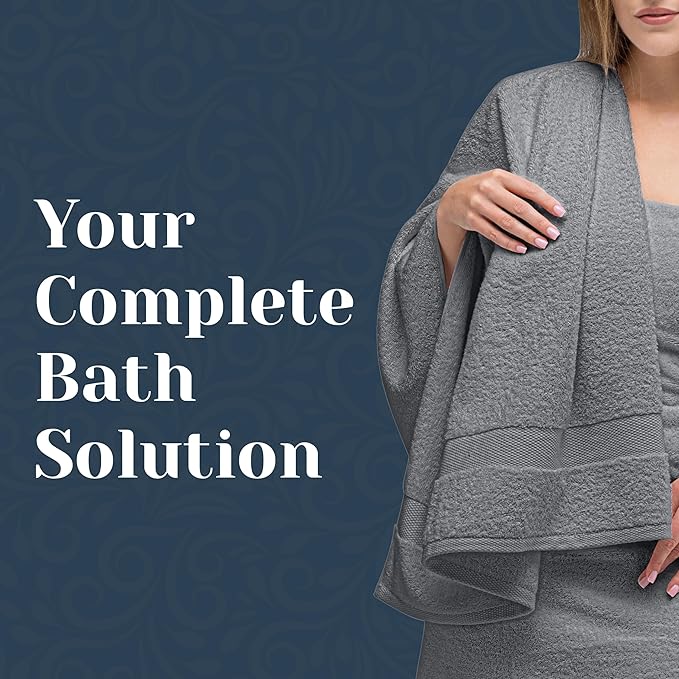 White Classic Luxury Bath Towel Set of 8 Pieces - 100% Turkish Cotton Highly Absorbent Towels for Bathroom, 2 Luxury Bath Towels 700GSM, 2 Hand Towels, 4 Washcloths, Light Gray