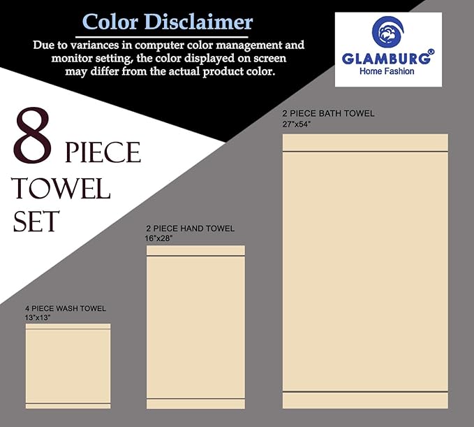 - Each set contains 2 oversized bath towels 27x54, 2 hand towels 16x28 & 4 washcloths 13x13