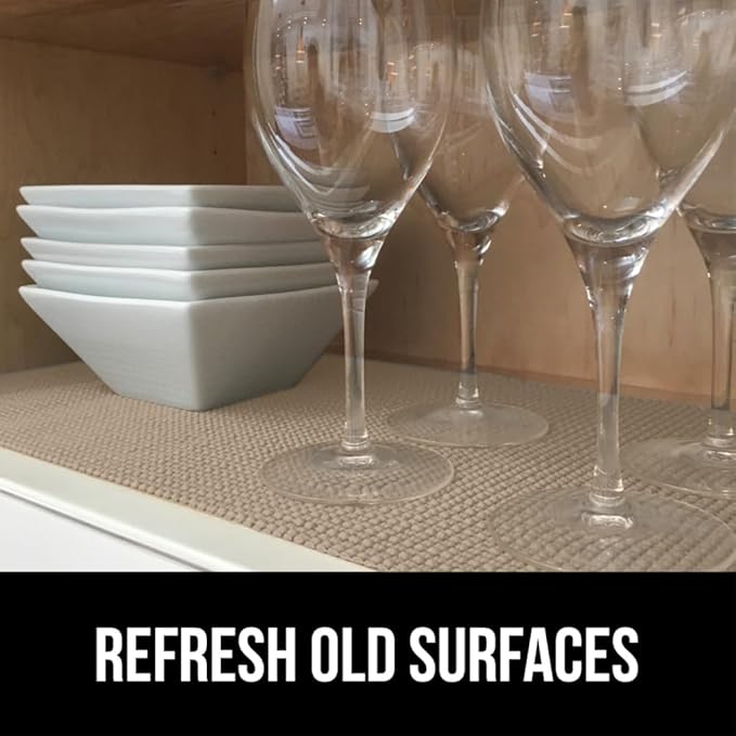 GORILLA GRIP powerGRIP Drawer Shelf and Cabinet Liner, Thick Strong Hold, Non-Adhesive Liners Protect Kitchen Cabinets and Cupboard, Bathroom Drawers, Easy Install, Breathable Mat, 17.5" x20', Beige