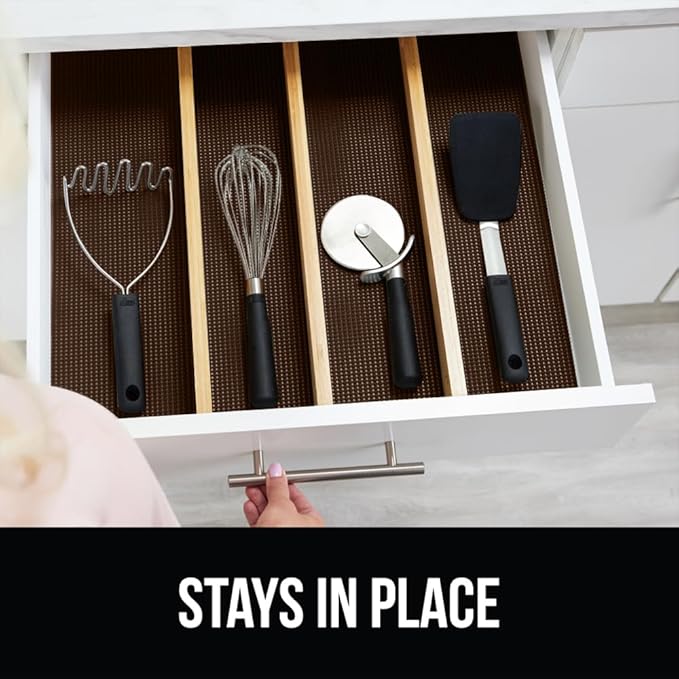 - KEEP ITEMS IN PLACE: thick and durable Gorilla Grip Drawer and Shelf Liners line your drawers and effectively helps to prevent items from moving and shifting around