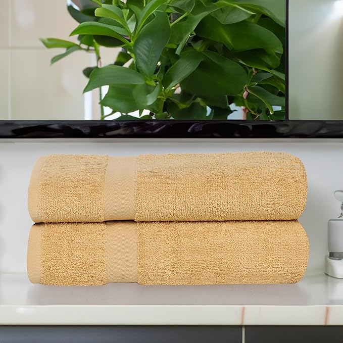 Superior 2-Piece Cotton Bath Sheet Set, Large Towels for Body, Quick Dry, Bathroom Essentials, Guest/Master Bath, Shower, Home Accessories, Apartment, Airbnb, Franklin Collection, Gold
