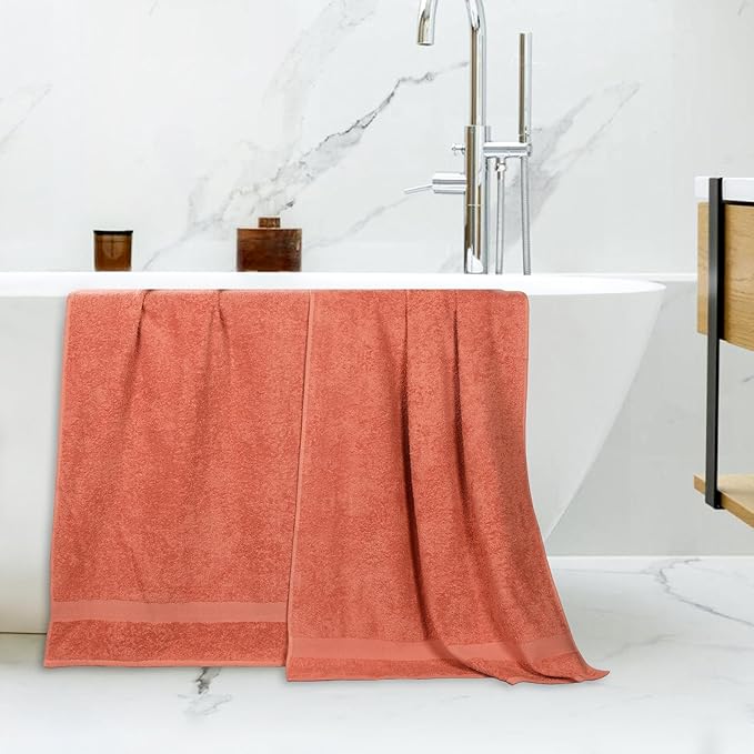 Superior 2-Piece Cotton Bath Sheet Set, Large Towels for Body, Quick Dry, Bathroom Essentials, Guest/Master Bath, Shower, Home Accessories, Apartment, Airbnb, Franklin Collection, Coral