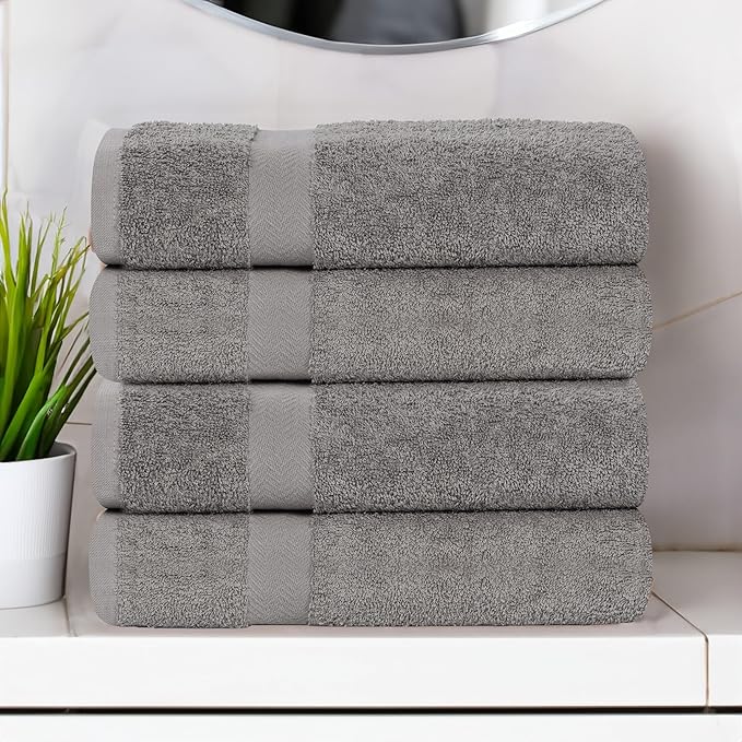 Superior 4-Piece Cotton Bath Towel Set, Towels for Adults, Kids, Fast Drying Body Towels, Shower, Bath, Pool, Guest/Master Bathroom Essentials, Dorm, Home, Apartment, Franklin Collection, Charcoal