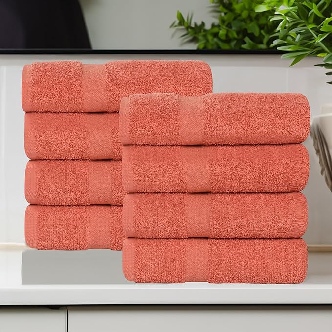 Superior 8-Piece Cotton Hand Towel Set, Small Towels for Fast Dry, Home Essentials, Bathroom Decor, Face, Body, Spa, Resort, Gym, Lightweight, Soft, House Accessories, Franklin Collection, Coral