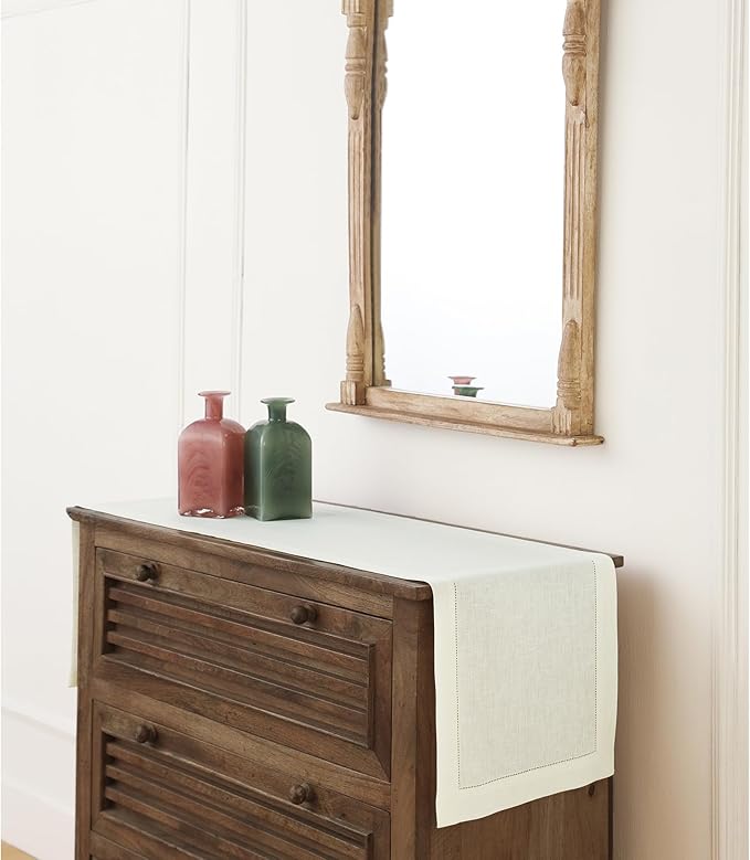 Solino Home Linen Ivory Table Runner 48 Inches - Classic Hemstitch, 100% Pure Linen Coffee Table Runner 14 x 48 Inch Ideal for Dresser Tables - Holiday, New Year